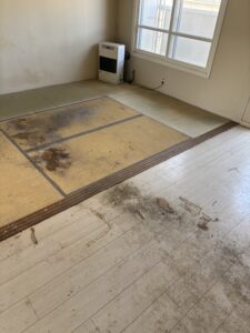 リビングはかなり汚れていましたね。ちなみに、清掃作業も出来ますので、ご希望の方は是非当店にお任せください。別途料金掛かってしまいますが、退去前に汚れたまま立会い確認はしたくない方がほとんどだと思いますので、仕事が忙しくて出来ないと言った方や、単純にご自身でするのが面倒くさいといった方々に当店みたいな便利屋にお任せください。お値段だけでも知りたいと言ったお電話だけでも全然構いませんので、お気軽にお問い合わせください。一生懸命対応させていただきますので、じゃんじゃんお問い合わせください。