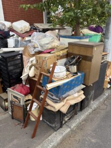 2日目に搬出作業をしていきます。皆で協力しながらじゃんじゃん搬出作業していきます。ゴミの量はかなりありましたが、搬出するだけなので、3時間程度で全部搬出することが出来ました。外に出したゴミはこんな感じです。