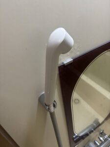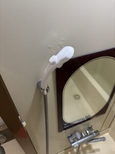 次にシャワーヘッドの交換ですが、元々取り付けいたシャワーヘッドは水漏れがあるとの事で、新しいシャワーヘッドを付けて水漏れがないかを確認して完了となりました。こちらは5分程で完了となりました。