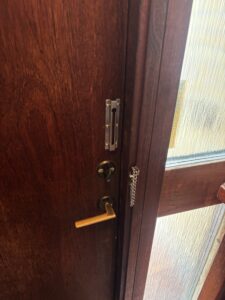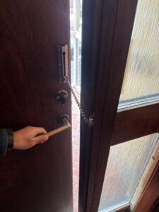 最後にドアガードの取り付けをさせて頂きました。ドアガードは位置が悪いとすぐにチェーンを外せれるので、位置の調整をしっかりと確認をして取り付けいきます。