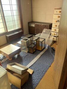 地下付きの6LDKの大きな家で細かいものはなく、家具がほとんどでした。当店では少しでも、お安く出来るように海外に輸出している業者さんとのお付き合いもあり、リサイクルショップとの繋がりも多く付き合わせて頂いていますので、買い取りだったり、無料にはなってしまいますが、食器や細かなもの、きれいな状態の小さい家具とかであれば持っていきますので、その分の金額も引かせて頂いているので、そちらもお客様に喜んでいただけています。その他にも、不動産屋さんから解体屋さんかたリフォーム屋さんもお付き合いがありますので、信頼できる業者さんしかいませんので、お困りでしたら、お声掛けください。